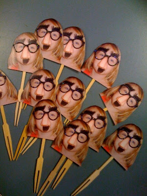 The graphics for the favor bags, birthday banner, personalized clothespins, all signs, felt personalization to the backs of the capes, personalized felt masks, and of course the cupcake toppers are all created by me! You can buy them at